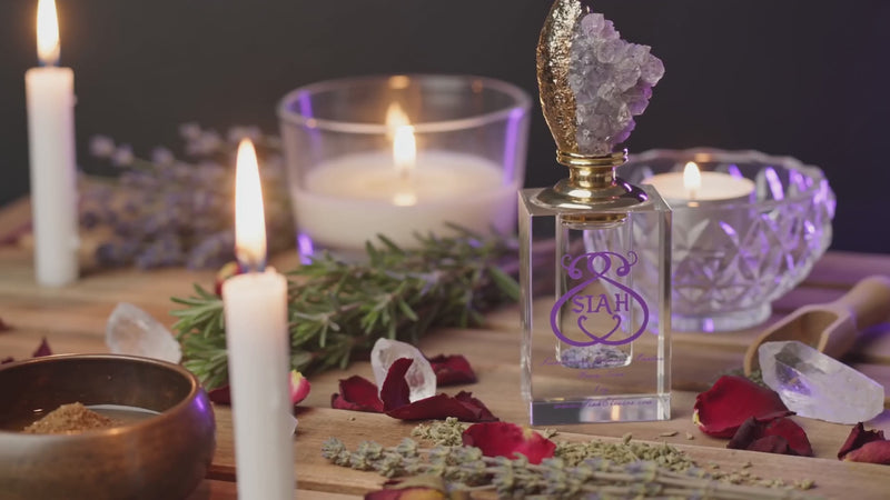 Some SIAHELIXIR bottles may feature amethyst crsytal attached to the bottle top as part of the product’s energetic design. Amethyst is widely regarded in many spiritual traditions as a stone associated with clarity, intuition, spiritual awareness, and energetic balance. It has historically been connected with calming the mind, supporting meditation, and encouraging deeper spiritual insight. Within intentional practices, Amethyst is often used to promote mental clarity, protection from negative energies, and alignment with higher consciousness. When paired with an intentional oil, the crystal serves as a symbolic energetic companion that may help support the intention set by the user during rituals, meditation, or daily spiritual practices.